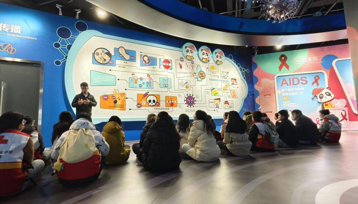 2025年12月21日,红十字心理健康禁毒防艾志愿服务队赴壹基金青少年防灾体验馆开展了一场以“艾滋病防治宣传教育”为主题的研学实践活动。本次活动旨在通过沉浸式学习与互动体验,增强学生的自我防护意识与社会责任感,引导青年学子在掌握健康知识的同时,自觉成为健康理念的传播者与实践者。这不仅是一堂生动的健康教育课,更是一次对青春成长的暖心护航,体现了志愿服务在青少年人格养成与责任担当中的积极意义。