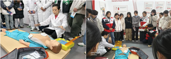本次活动最受期待的环节是应急救援专业实训。在专业老师指导下,志愿者围绕模拟人学习了AED使用、气道梗阻急救等“黄金救援”技能。同学们从观摩到实践,既掌握实操本领,又体会到尊重生命、守护健康的真谛,展现了新时代青年乐于学习、敢于担当、勇于奉献的精神风貌,这也是红十字“人道、博爱、奉献”精神从理念到行动的重要体现。