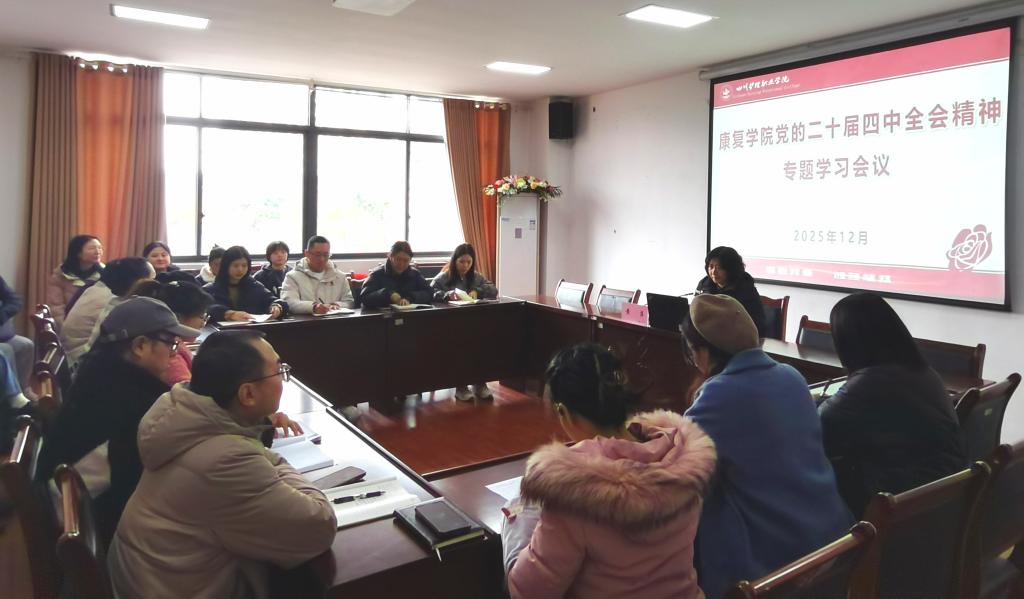 为深入学习贯彻党的二十届四中全会精神,助力学院高质量发展,12月4日下午,康复学院在成都校区厚德楼二楼会议室召开学习贯彻党的二十届四中全会精神专题会。会议由党总支书记黄萍主持,全体教职工参加。